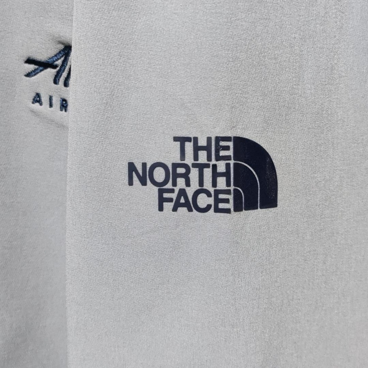 左腕にノースフェイスのプリントロゴ