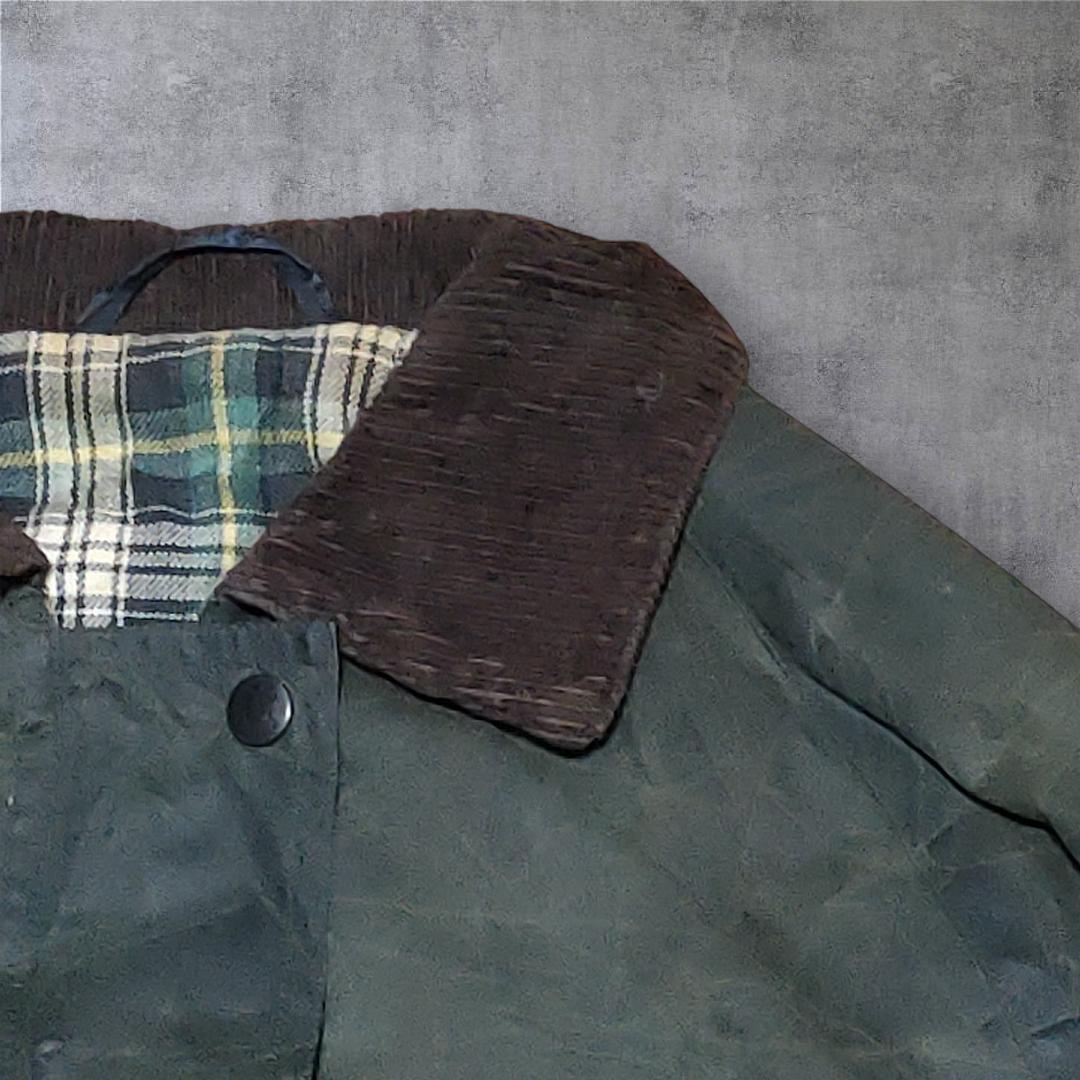 オリーブ色のボディにコーデュロイの襟、タータンチェックライナーのトラディショナルなスタイルです。